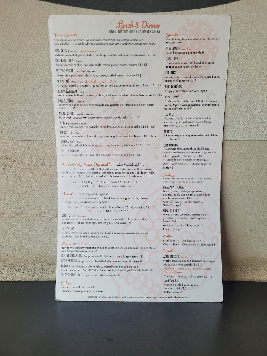 Patrons rave about the flavor-packed plates, such as the savory Chicken Tinga and Puerco Verde, complemented by incredible homemade tortillas. With a gorgeous tree-lined patio, Seis Kitchen offers not just meals but a delightful dining experience.